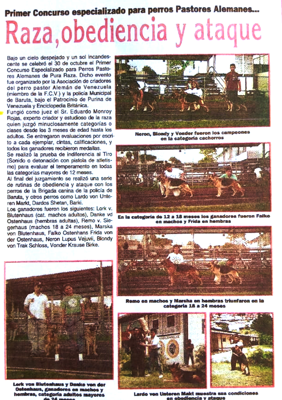 Recordemos que para la época de los 80´s y 90´s, la Federación Canina de Venezuela – FCV traía jueces del American Kennel Club - AKC y por medio de sus exposiciones, estos apoyaban y promocionaban las líneas americanas del Pastor Alemán, que resultaban una contradicción al estándar y a los criterios de crianza emanados de Alemania.
